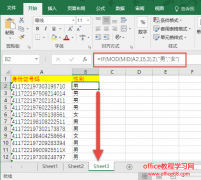在身份证号码中虽然直接看不出性别,但其中的某些位数却暗含着性别信息,通过简单运算可得知男女性别。我们只需在B2单元格输入如下信息并向下填充该列即可: =IF(MOD(MID(A2,15,3),2),男,女) 解释:上述函数从A2单元格的第15位开始截取3位数,然后做取模运算,若余数为0则为男,否则为女。...