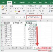 如果已经有了合同签订的日期数据,也知道了每笔合同签订的有效期(月数),就可以用下面的公式来自动计算出合同到期的日子: =EDATE(A2,B2)-1 在如下图所示的C2单元格中输入上述公式并用填充柄填充C列,即可自动获得到合同的到期日期。 解释:EDATE函数的格式为EDATE(start_date, months)。其中Start_date代表开始的日期;...