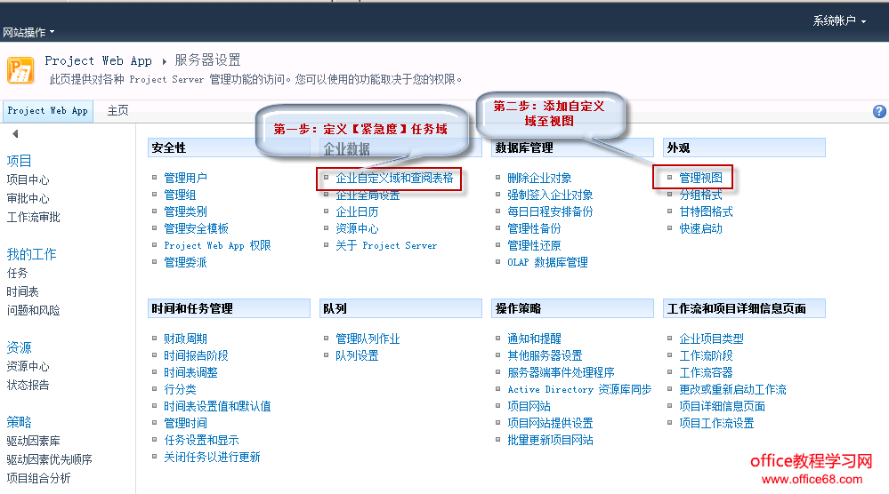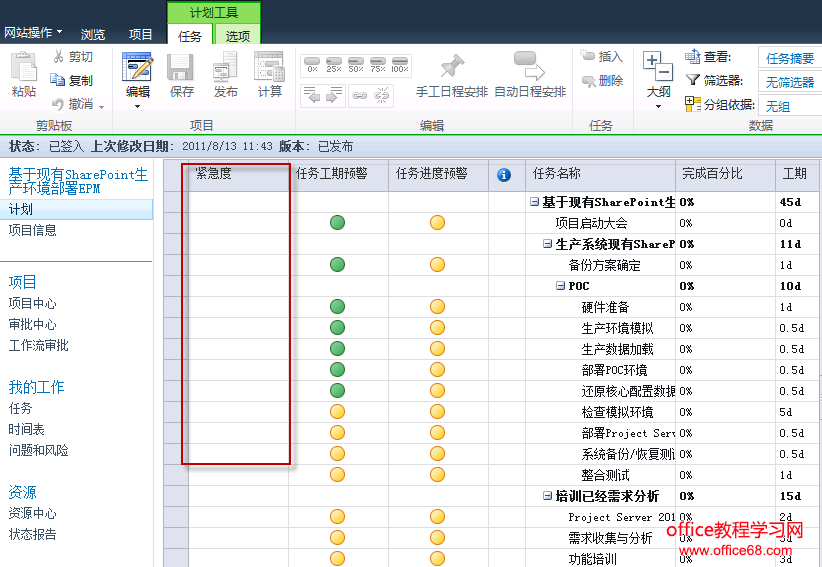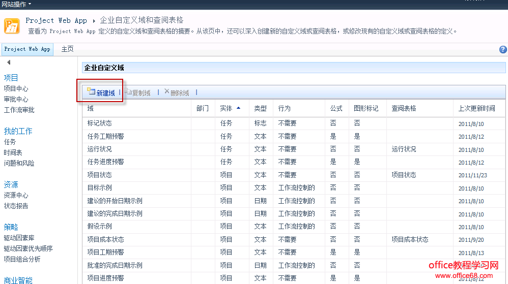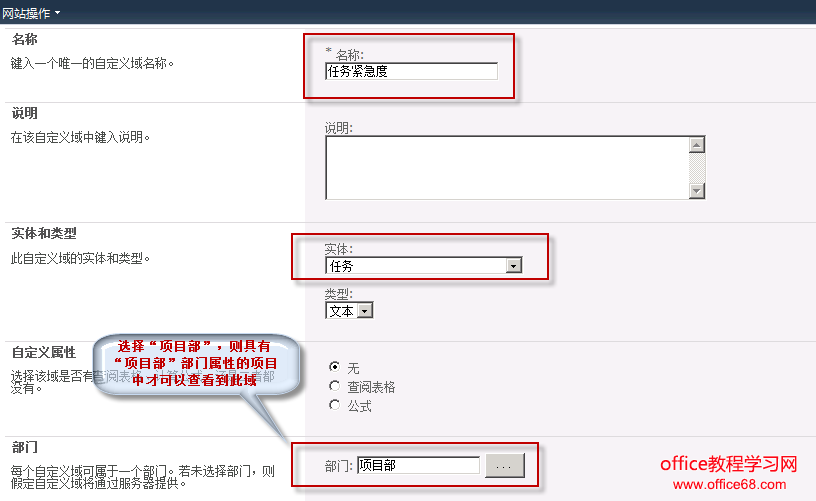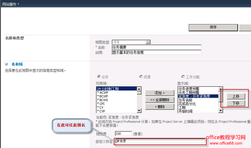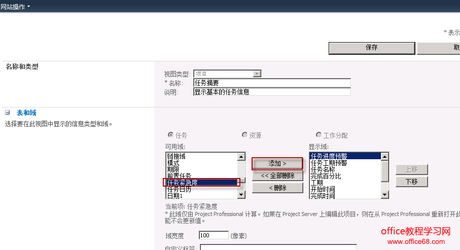 需求: 要求在项目中心的视图中,显示【任务紧急度】情况 步骤: 1:添加一个类型为任务的自定义域