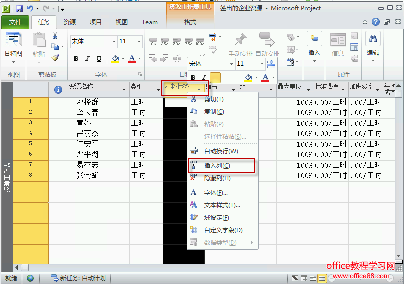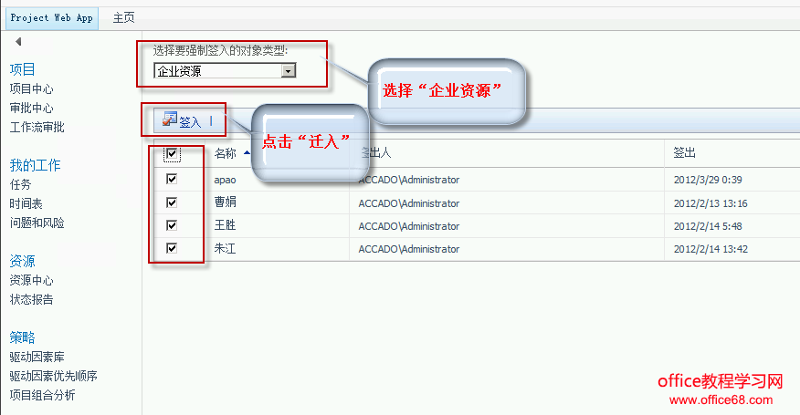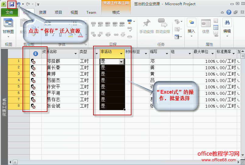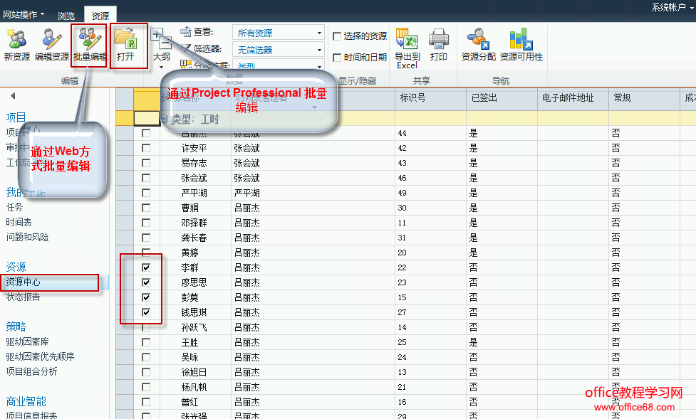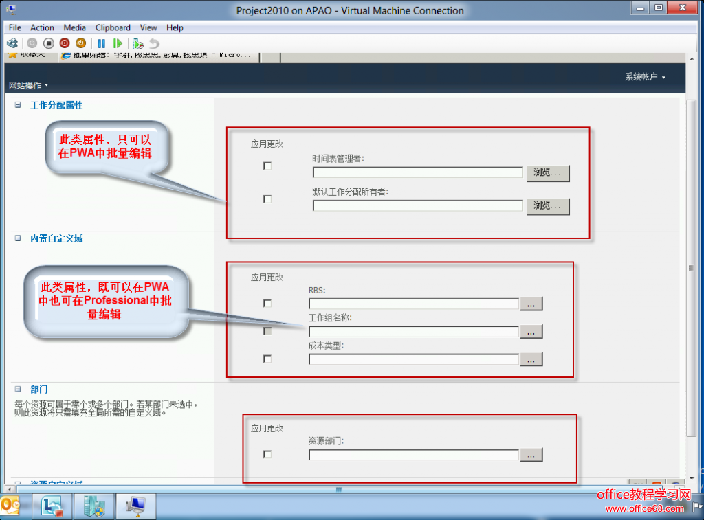 请注意:Project Professional 2010批量编辑资源属性的时候,有可能会存在无法调用资源的情况,解决办法就是:将PWA加入信任站点 |