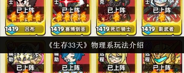 生存33天物理系怎么玩?应该不少玩家都想要知道,生存33天物理系作为一个比较强劲的输出流派,在整个游戏中,为了能够满足生存,需要组建物理伤害的羁绊小队,在这样的情况下,让他们能够尽可能的发挥实力,从而能够更好的去保护好自己,其实在组建物理系小队的时候,还需要搭配对应的装备跟技能,感兴趣的朋友可以一起来看看喔!
