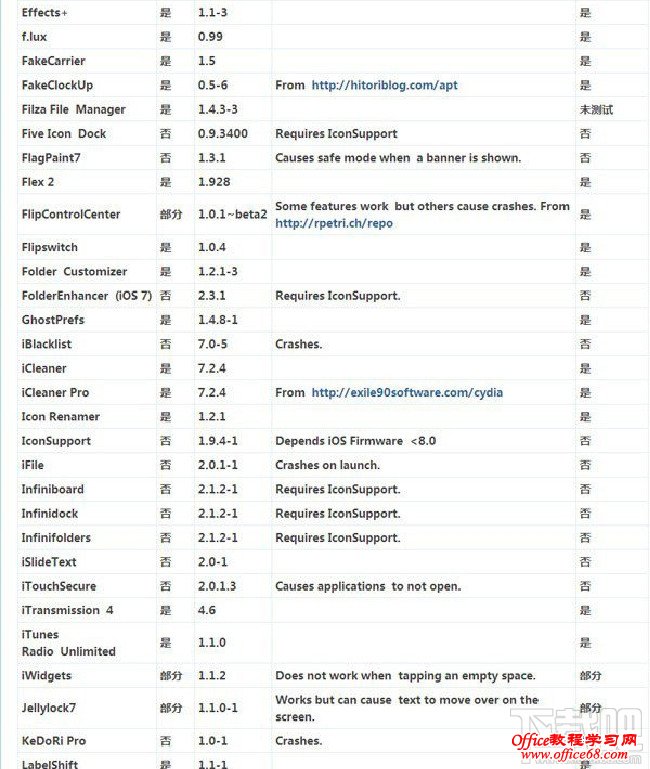 ios8越狱后必装插件 越狱插件汇总。ios8可以越狱了,很多果粉不知道ios8越狱后必装插件有哪些?也不是所有的插件都能够兼容IOS8完美越狱。下文小编给大家准备一张表,这样大家可以根据这个表知道这个插件适不适合安装越狱后的ios8。