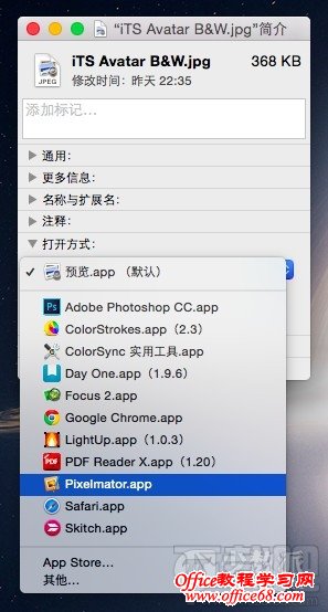 在 OS X 中,Finder 存储的文件总会以指定的某个默认应用程序打开,比如图片类型的文件默认以「预览」打开。但由于笔者经常需要使用图片编辑工具 Pixelmator 打开图片类型的文件,每次都要右键单击某张图片,然后在「打开方式」下拉列表中选择 Pixelmator。那么我们有没有办法更方便做到这一点?或者说能不能让它默认就使用 Pixelmator 打开呢?下面两个技巧就将告诉你,如何让某个 / 某类文件始终以你所指定的应用打开。 方法 1. 更改某一个文件的默认打开方式 第一步:右键单击该文件。 第二步:按下 Option 键,你会看到「打开方式」选项变成了「始终以此方式打开」。 第三步:选择「始终以此方式打开」列表内的某一个应用程序。 ![]() 那么该文件应该在你刚刚选择的应用程序(本例为 Pixelmator)内打开,并且,该文件以后也会默认以这个应用程序打开。 注:它仅适用于你所选择的这一个文件,并不适用于其他文件,包括同一类型的文件。 方法 2. 更改同类型文件的默认打开方式 第一步:右键单击该文件,然后选择「显示简介」选项。 ![]() 第二步:找到「打开方式」项目,点击倒三角选择你想指定的默认应用程序。 ![]() 第三步:单击「全部更改」按钮即可生效。 ![]() 注:要恢复到原来 OS X 指定的默认应用程序,只需再次按照上述步骤,并选择原来的应用程序即可。 如果你和笔者一样发现自己总是使用某个特定应用(而不是默认的)来打开某个文件类型,那么更改其默认打开方式可能会给你节省一定的时间。如果你有任何关于本文的其他建议,欢迎在文末留言讨论。 |