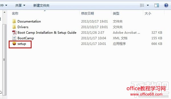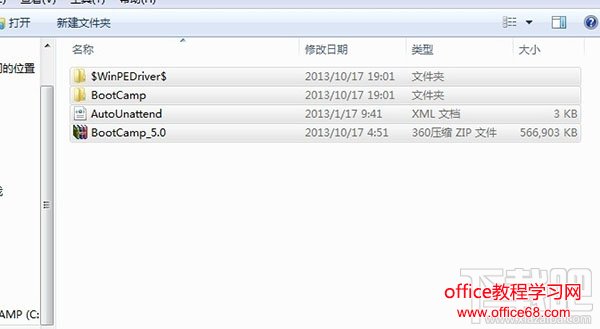 选择你分好的系统盘C盘,确定,然后又开始跑。 至此,接下来就等着吧,加载好镜像之后电脑会自动重启,重启的时候会停在白色屏幕大概半分钟的时间,千万别心慌,正常的现象,静静的等着,然后WINDOWS开始安装,然后就OK了。 第4步,安装驱动 因为现在的WINDOWS镜像基本都是内置好驱动安装程序的,所以安装WINDOWS的时候显卡啊,声卡啊等等这些的驱动都一般会一起装好的,但是装好WINDOWS之后,你会发现你的键盘灯不亮了,双指触摸的右键功能也没了,这时再打开前面准备好的BOOT CAMP,再次附下载好之后,解压出来,得到如下文件,如下图:
