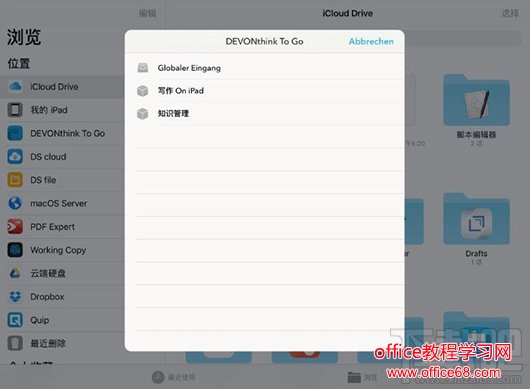 和「我的 iPad」以及「iCloud」不同,第三方云服务以及第三类的应用的文件不会显示 Files 原生的界面,而是会打开类似 「Document Provider」的界面。
