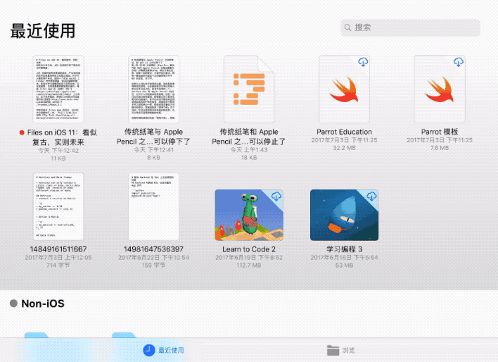 Files 替代了 iOS 10 中 iCloud Drive ,除了界面上的不同,Files 可以管理更多的文件 。