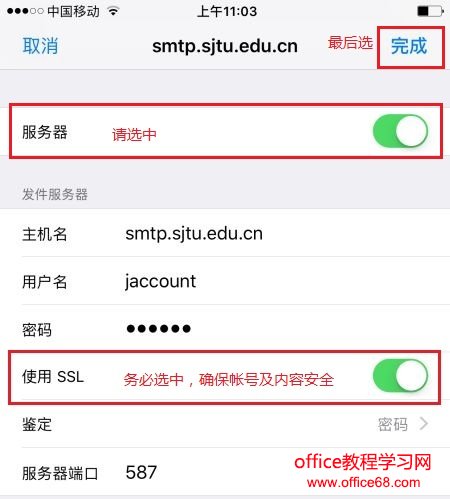 请按照每一个图片的设置要求配置。 跳过步骤会导致您的帐号密码及邮件内容被第三方获知,危害您的信息安全。