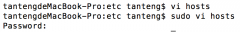 在MacBook中如何修改Hosts文件呢?在应用程序里面打开终端(terminal), 输入命令 sudo vi /etc/hosts 然后提示输入系统密码 hosts文件就自动打开了 这个时候就要会vim的操作。根据vim的操作保存修改即可。...