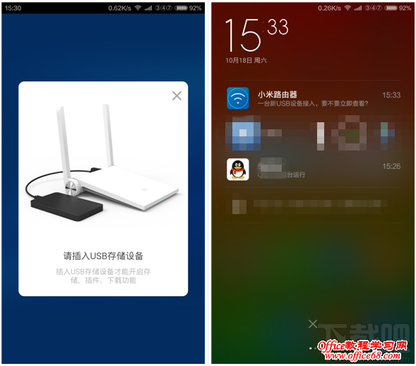 小米路由器mini和小米路由硬盘版一样都带有远程下载功能,是传统的无线路由器从来未有过的功能。通过远程下载可以使用小米路由APP即可操作家中的路由器下载电影、软件神马的,下班回到家就可以轻松享用大片了。 小米路由器mini远程下载功能使用指南1.小米路由mini是不自带硬盘的,所以必须得我们自己插上移动硬盘。在不插硬盘时,在手机的APP中,如果打开远程下载功能是显示要你插入USB存储设备的。插上后,过一会,手机就会有提醒了。