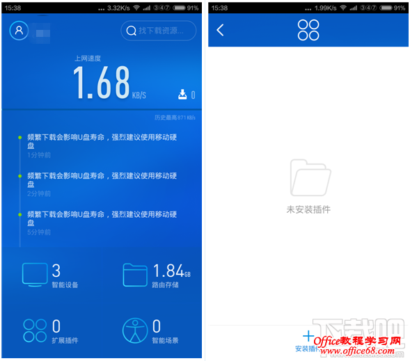 3.小编用一个2G的内存卡来体验,所以打开APP后,它会提醒不要频繁下载,否则会影响U盘的寿命。远程下载有两种方法,不过我们一般用插件的方法。