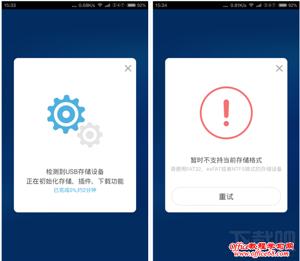 2.插入USB存储设备后,它还有一个检测环节,这个过程需要2.3分钟。它并不是所以格式都支持的,目前只支持FAT32、exFAT和NTFS格式的存储格式。不过有时它也会识别错误。我插入后,有几次都识别错误,重新插过才可以。