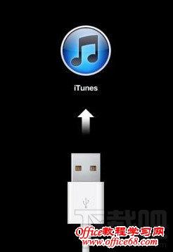 2、用数据线将iPhone/iPad连接到电脑。 3、同时按住iPhone/iPad的home键和开关键直到屏幕上出现如下画面,使iPhone/iPad进入恢复模式。