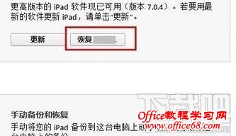 4、在电脑上打开iTunes软件,并按住键盘上的“shift”键,点击【恢复】按钮