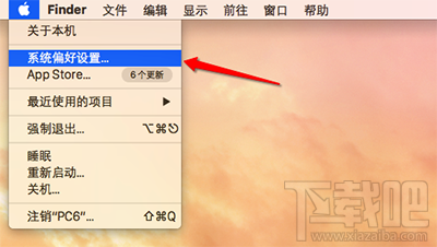 第一步、点击桌面左上角苹果标志,菜单中点击选择“系统偏好设置”