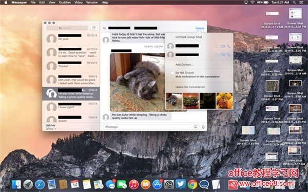 Yosemite中Messages具备的特性让它在iOS 8中一样优秀:可以暂时让对话静音,或者完全退出对话。如果你想分享自己桌面上的东西,或者解决相关的技术问题,Messages让你可以与正在聊天的人分享屏幕。 深色模式