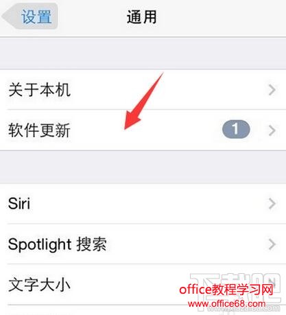 打开设置后,我们在它选项下找到并点击”通用“,且在进入通用选项下后,我们再找到”软件更新“这一项,当然点击它。