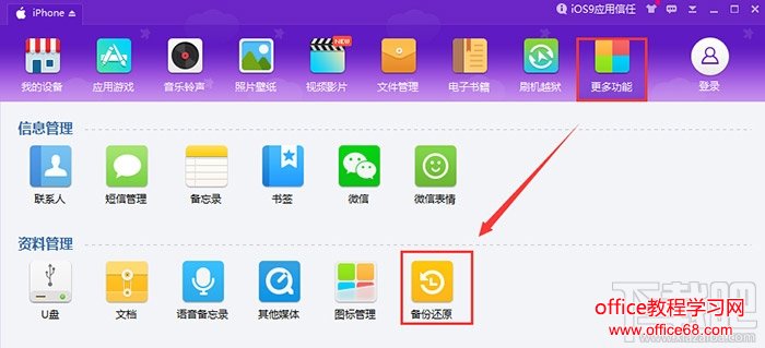 2.由于是iOS10首个开发者测试版,卡顿现在较为严重,第三方应用还未完全兼容,导致部分新功能无法使用。当然如果遇到一些bug也再所难免,毕竟是首个测试版。如果你介意这些问题,那么不建议现在升级iOS10。 3.提前做好备份,以防刷机出错导致数据丢失。运行同步助手,切换到【更多功能】—【备份还原】备份设备里的数据。