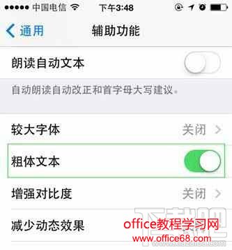 2、勾选“粗体文本”向下滑动,找到“粗体文字”,将右侧的开关按钮打开。