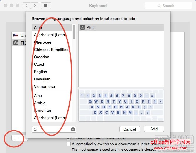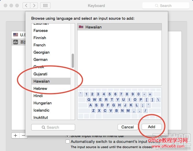 第三步,找到输入法名为 Hawaiian 的选项,选择添加。