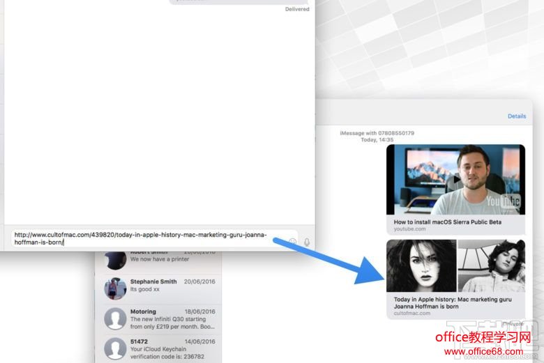 我们可以通过这个方法发送 YouTube 视频,但是 Vimeo 等视频网站目前还无法正常发送。但是我们可以期待今年秋天发布的 macOS Sierra 系统正式版中会添加更多的视频网站支持。