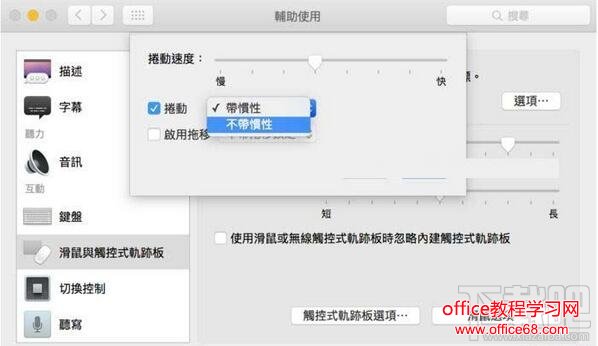 4、拖动捲动速度,转换模式需要按下捲动,切换“带惯性/不带惯性”就可以了。