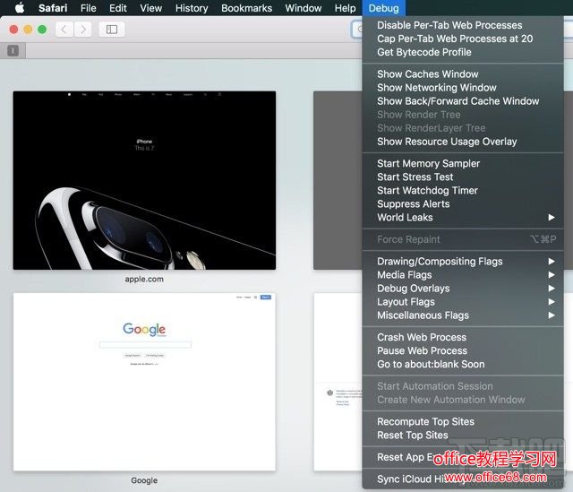 通过下列指令,你可以开启 Safari 的调试菜单,其中包括了日志、强度测试等选项。
