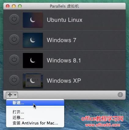 1、运行Parallels Desktop,若未安装,请先下载安装。选择“新建”菜单,新建虚拟机。