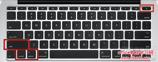 3.同时松开 Shift, Control, Option 这三个键,保持按住电源键不动直到开机