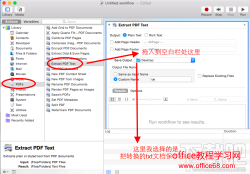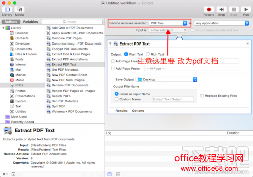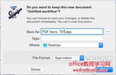 Mac系统下如何将PDF转换成TXT文本?在Mac系统下我们怎么将PDF文件转换为txt格式的文本文档呢?其实在Mac系统中自带的Automator应用程序就能帮我们快速实现将PDF转换为txt文本,下面小编给您带来详细的操作教程: Mac系统下如何将PDF转换成TXT文本?1、首先打开「应用程序」-「其他」-「Automator」 ![]() 2、接着弹出的窗口中点击「完成」 ![]() 3、点击DOCK栏里的Automator应用 ![]() 4、选取「工作流程」, ![]() 5、操作下方「 资料库」选PDF-「 提取PDF文本」,之后将「 提取PDF文本」拖入到右栏空白处,如图 ![]() 6、选择文件存储,注意文档格式选「 应用程序」,任意命名,默认保存到桌面(保存位置根据个人习惯选择),桌面上就会出现刚才建好的Macgg.app, 随意找个PDF文档拖入其中,是不是一秒钟就生成TXT了呢 ![]() 7、这里还有一种方法,我们也可以创建[服务]实现此文档转换,只需把此操作转换成单机鼠标右键,即可实现PDF到TXT的转换。但是和之前的部署的步骤有些许不同。不同之处有两点; 1.这里选择的不再是[工作流程]而是[服务] ![]() 2.操作下方「 资料库」选PDF-「 提取PDF文本」,之后将「 提取PDF文本」拖入到右栏空白处,如图注意事项 ![]() 3.照常保存,自己给此操作命名,之后只要点击鼠标右键,选择服务那里就可以看见你命名的这个操作了,点击它就可以实现pdf转换txt ![]() |