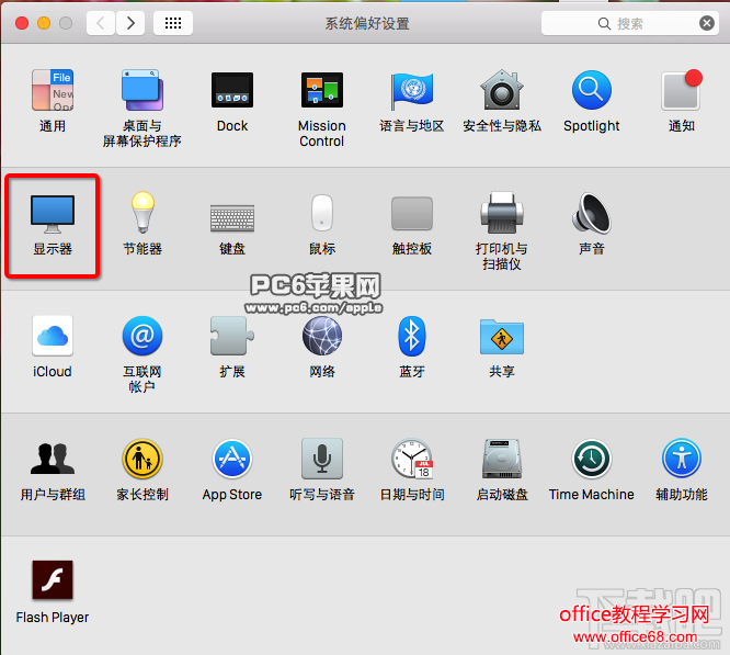 2、在系统偏好设置中,进入“显示器”设置选项。