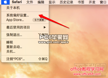 1、首先在左上角点击苹果图标,选择进入“系统偏好设置”。