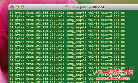 Mac怎么使用ping命令?苹果电脑ping命令在哪里?电脑出问题了,上不了网,想排查下电脑的问题出在哪儿就需要用到ping,但是如果是Mac电脑该如何ping呢?其实在Mac 自带的“终端”中使用ping命令,那么Mac怎么使用ping命令呢?下面小编教你如何在Mac系统中使用ping命令。 Mac怎么使用ping命令?1、首先我们要打开“终端”,在finder中,打开一次点击【finder】-->【应用程序】 ![]() 2、在应用程序里面找到【实用工具】,并使用鼠标左键单击它进入到【实用工具】里面,实用工具在窗口的右侧,比较下面的位置! ![]() 3、一般情况下,在【实用工具】中的工具列表里面的倒数第二个就是终端,可能你电脑里面该工具的位置与我的不一样,但是都叫【终端】! ![]() 4、打开终端之后,我们在终端输入【ping IP地址】,IP地址处填写你要ping的人的IP哦! ![]() 5、然后我们按retrun键执行,执行该命令后,下面会显示ping的信息。因为网络连通的缘故,所以我这里能ping通哦。 ![]() |