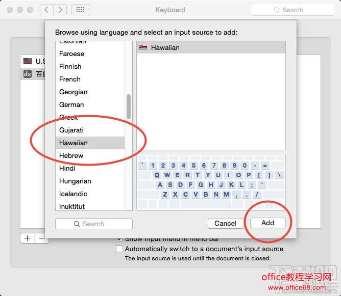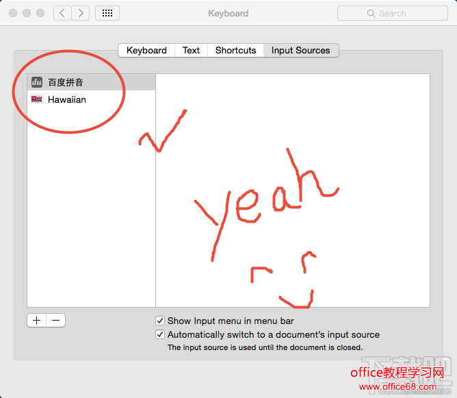 对于使用英文系统的朋友们,如果想把第三方中文输入法设置为默认输入法,让英语输入法排在第二位,并不是一件简单的事。下面小编给大家分享了一个新的设置方法,一起来了解一下。 MacBook默认输入法设置方法如下所示:第一步,安装第三方输入法,而可以在键盘设置里,U.S. 输入法仍然占据着顶栏的位置,无法改变也无法删除。 ![]() 第二步,选择左下角的添加按钮。 ![]() 第三步,找到输入法名为 Hawaiian 的选项,选择添加。 ![]() 这时候,我们返回查看原有的输入法,U.S. 的选项已经显示可以删除了。 ![]() 第四步,删除 U.S. 输入法。 ![]() 那么问题来了,添加的 Hawaiian 选项有什么用呢?锋友 wangji365 表示,Hawaiian 其实就是“夏威夷语”,它跟已经删除的 U.S. 输入法并没有什么区别。 ![]() 在亲身测试之后表示,Hawaiian 跟 U.S. 键盘的所有字母符号都对应无误,所有 Shift 键组合也能正常工作。这样一来,我们就成功将第三方输入法设置成了默认输入法。 |