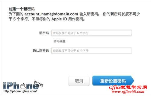 4.点击电子邮件中的链接或回答安全提示问题后,您将会看到用于重设 Apple ID 密码的选项。