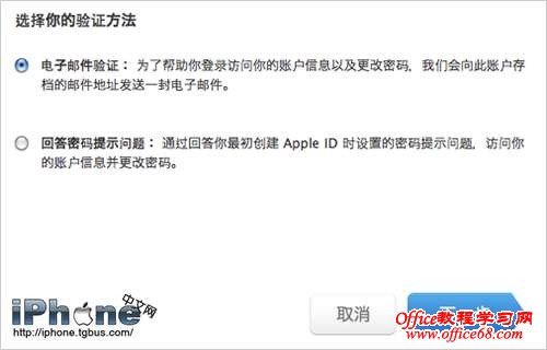 3.您将会看到两个选项:电子邮件验证或回答安全提示问题。