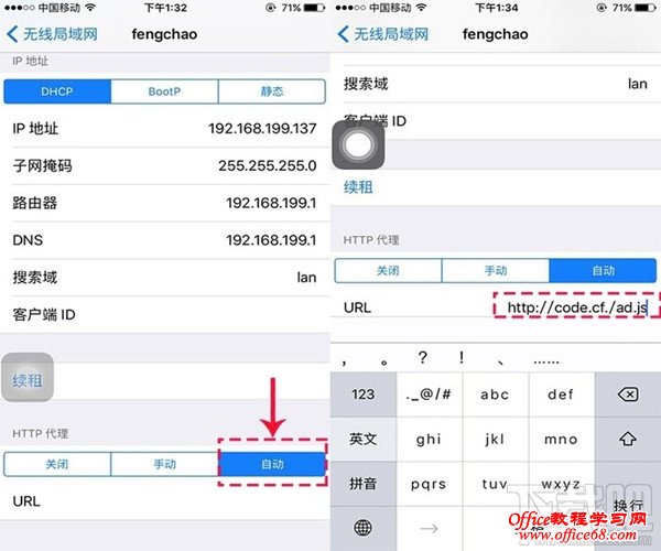 3、HTTP代理选择自动,然后在URL处填上:http://cdce.cf/ad.js