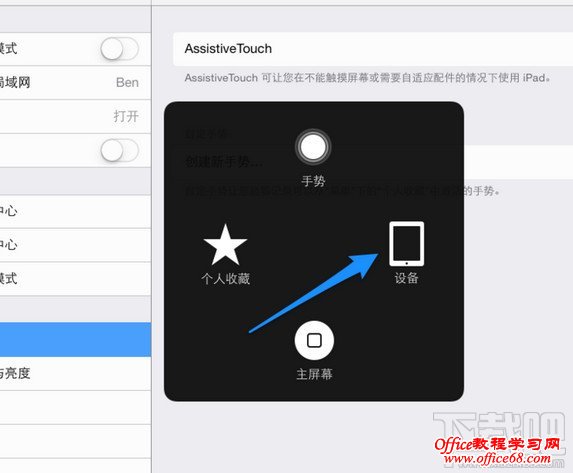 点击屏幕上的小白点以后,在主界面中点击“设备”图标