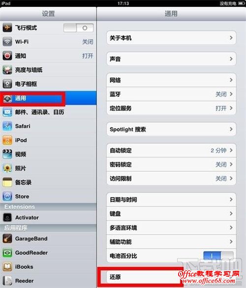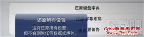 4、在弹出的对话框中轻点“还原”按钮即可完成ipad所有设置的还原;