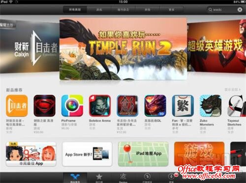 1、 首先得把iPad 连接上无线,可以通过苹果的 App Store 商店下载应用程序,比如游戏,教育,理财,电子图书,报刊等各类应用程序。