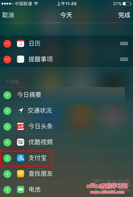 二、然后进入到了添加页面,看到+支付宝选项,添加支付宝,点击【完成】