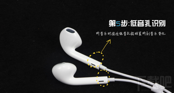 真:原装线材在用指甲掐后能够逐渐复原。(掐太狠的话就重新买一条吧。) 假: 假货的耳机有着一颗空洞的“芯”,指甲掐完的痕迹一直难以消失。 (辨认指数四颗星) 【第五步——低音孔识别】 不要以为耳机单元下方的两个丨型开口是摆设,这可是一个即使不是音乐发烧友的人也能轻松识别真假的超强技能。 真:用双手捏住两个孔,可以听到音乐明显发生变化,遮住前低音效果比较优秀,遮住后低频减少,人声稍尖锐。原理是正品的EarPods将振膜的一部分气流从耳机墙体内导向耳机下方的丨型孔排出了,目的是为了加强低频的量感和质量。 假:省省吧,别捏了,捏爆都听不出差别的。因为“你只是模仿我的脸……”,假货只是照葫芦画瓢而已。