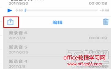1、将录制好的录音保存好后,点击录音名称,底部会弹出一些工具图标,点击第一个分享图标。