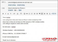 对于拥有美版有锁iPhone的用户来说,近期ATT大方的提供了符合条件的有锁iPhone合约用户解徜服务无疑惧是个喜讯。之前电玩巴士iPhone中文网为大家提供的官方客服电话( 教程 )和官网在线客服( 教程 )两种解锁渠道,虽然能即时受理,但对于部分英文吃力的朋友来说,还是有点难度。下面,小编再为大家介绍一种通过电子邮件...