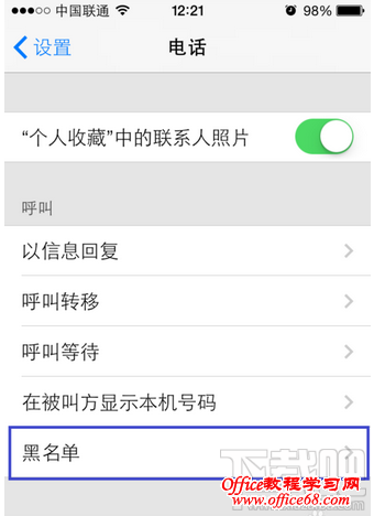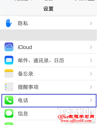 方法四:还可以在管理电话中添加黑名单: 在“设置”列表中点击“电话”选项
