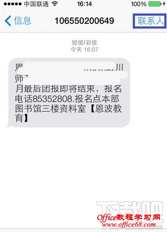 系统会提示我们将会阻止此号码的电话,信息和FaceTime,点击“阻止联系人”确认阻止。这样我们就把垃圾短信拒之门外了。