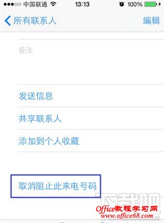 如若要取消阻止,在联系人详细中点击最底部的“取消阻止此来电号码”选项,如图所示