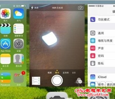2.在iphone6的多任务管理界面,向左或向右滑动界面,将相机应用调至中间位置。