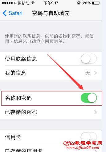 4:将“名称和密码”后面的开关键打开,我们的设置过程就结束啦。不过,还有最关键的最后一步。