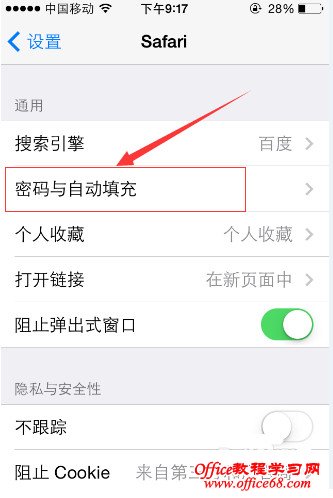 3:在Safari中我们看到有“密码与自动填充”选项,点击进行下一步。