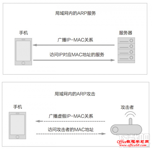 ARP攻击,就是强制修改了局域网内这个映射关系,将所有IP地址本来对应的MAC地址,通过广播改为黑客自己计算机的MAC地址上,并伪造要访问的网站。同样的,用户上网时,即使域名和对应的IP地址都是正确的,因为最后发到的MAC地址错了,也只能打开黑客精心伪造的假网站。